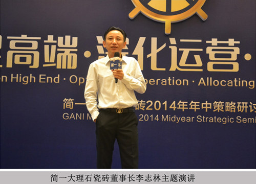 7月9日上午,隨著氣勢磅礴的大合唱《簡一之歌》奏響,簡一大理石瓷磚2014年年中策略研討會正式拉開序幕,在共同回顧了2014年上半年簡一大理石瓷磚所取得的成績后,簡一大理石瓷磚國內(nèi)營銷總經(jīng)理邱文勝做了《2014年上半年工作總結(jié)及下半年工作計劃》的主題發(fā)言。