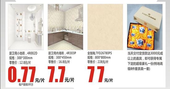 專享二:7月26日當(dāng)天,北海特地陶瓷提供多款工廠直供的零利潤(rùn)產(chǎn)品限時(shí)搶購(gòu),并放送前所未有的全場(chǎng)限時(shí)折扣;