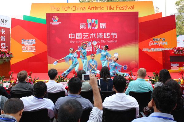 10月18日上午10點,秋風颯爽,第十屆中國藝術瓷磚節(jié)在一曲《彩瓷喜盈盈》舞蹈中拉開序幕。