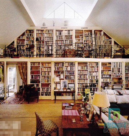 上下兩層墻面式的原木書柜相等于一個(gè)小圖書館了,適用于藏書多的戶主,上下整齊很有層次感,樓梯和欄桿的設(shè)計(jì)特別復(fù)古,在二層戶主可以留出相當(dāng)?shù)奈恢梅胖米雷雍鸵巫印?/span>