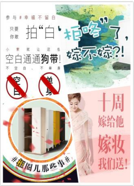 答案當(dāng)然不會(huì)是這樣無(wú)厘頭,無(wú)論是牽手熱播綜藝《十周嫁出去》,還是推出“柜咚”了,嫁不嫁?”、“柜圈兒那些事兒”、“幸福不留白”等等微博活動(dòng),其實(shí)索菲亞衣柜都是在推廣和打造“定制愛(ài)定制家”的整體理念。“柜咚”征集表白曬圖,“柜圈那些事兒”則明明就是“秀恩愛(ài)”,至于“幸福不留白”,其實(shí)就是在征集網(wǎng)友們自己的”幸福宣言“。