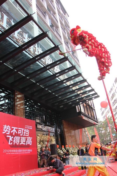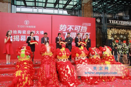 緊接著,大隊移步前往特地陶瓷新總部大樓參與揭幕盛典,特地陶瓷新總部大樓內有2600m²的高奢氣派展廳以及集辦公區(qū)、會議室、健身娛樂于一體的國際化辦公大樓。隨后,特地陶瓷董事長馮紅健、董事總經(jīng)理李強以及盛邀嘉賓開啟剪彩儀式,更有精彩舞獅助陣,場面熱鬧非凡。