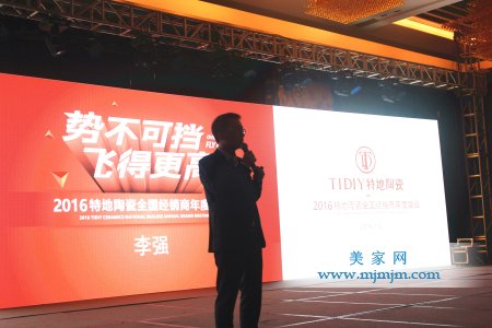 同日下午,特地陶瓷董事總經(jīng)理李強的《2015年度營銷報告》針對行業(yè)、企業(yè)、終端的現(xiàn)狀,就特地陶瓷該如何突破重圍,重塑自我發(fā)表演講。李總就倒閉潮現(xiàn)象強調把握趨勢和方向很重要,在互聯(lián)網(wǎng)+的大趨勢下,認為憑借口碑宣傳能節(jié)省營銷成本,產生流量優(yōu)勢;整合供應鏈實現(xiàn)價低高效,最終占領家裝市場入口。詳細解說“二八原則”,表明整合資源,滿足剛需的重要性。李總還表示現(xiàn)在是年輕人的時代,80、90的審美已經(jīng)形成,產品的應用會更大膽,更炫。在2016年,特地品牌平臺將是一個提供創(chuàng)新產品,優(yōu)質服務的平臺,是一個所有特地人共贏的平臺!