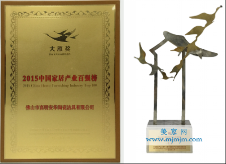 安華衛(wèi)浴2015中國家居產(chǎn)業(yè)百強(qiáng)榜“大雁獎”