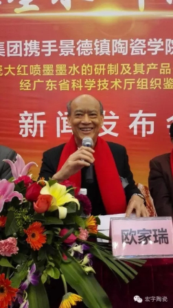 宏宇集團(tuán)副總經(jīng)理歐家瑞在新聞發(fā)布會(huì)現(xiàn)場(chǎng)講話中表示,宏宇集團(tuán)與景德鎮(zhèn)陶瓷學(xué)院產(chǎn)學(xué)研合作研發(fā)成功的“高溫陶瓷大紅墨水”,解決了幾千年來高溫陶瓷大紅發(fā)色不穩(wěn)定、不鮮紅的世界難題;宣布了“高溫陶瓷大紅墨水”研發(fā)的“世界杯賽”,中國人首先攀上了頂峰;為“中國制造”、“中國創(chuàng)新”贏得了崇高榮譽(yù)!此次召開新聞發(fā)布會(huì),邀請(qǐng)眾多媒體記者前來見證和分享中國陶瓷人的這一崇高榮譽(yù),是為了請(qǐng)記者朋友們把“大紅墨水”這一“中國驕傲”廣為傳播,讓全體中國人一起分享成功的喜悅,更為重要的是,希望能激起更多炎黃子孫的壯志雄心,響應(yīng)國家“大眾創(chuàng)業(yè)、萬眾創(chuàng)新” 的號(hào)召,努力投身創(chuàng)新實(shí)踐,為實(shí)現(xiàn)偉大的中國夢(mèng)共同努力!