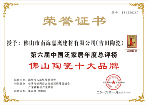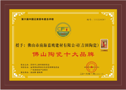 吉田陶瓷喜獲“佛山陶瓷十大品牌”榮譽(yù)稱號