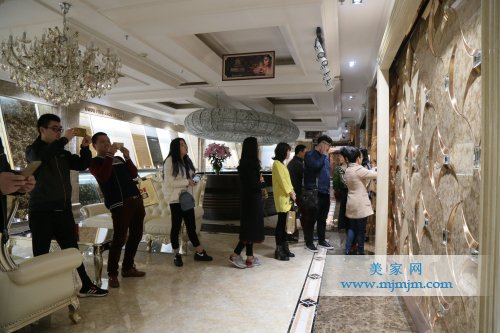 設(shè)計師們觀看氣勢宏大的企業(yè)宣傳片,整體了解企業(yè)概況,然后從文化長廊、工廠模型中認(rèn)識博德的企業(yè)文化與生產(chǎn)規(guī)模。隨后,姚經(jīng)理帶領(lǐng)大家參觀VIP展示區(qū),展示區(qū)運(yùn)用精工玉石、珍石、寶石產(chǎn)品,營造了高級會所、高級別墅空間,將產(chǎn)品的雍容華貴表現(xiàn)得淋漓盡致。
