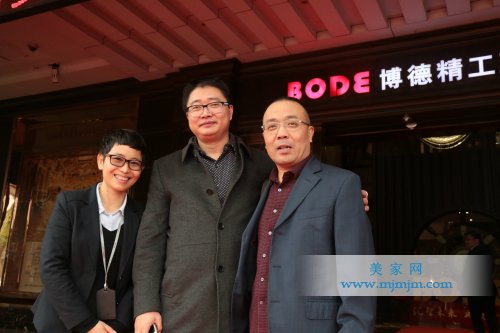 博德設(shè)計部總監(jiān)陳天培(中)設(shè)計部展示傳播與審核經(jīng)理姚美菊(左)淄博博德旗艦店李總(右)合影