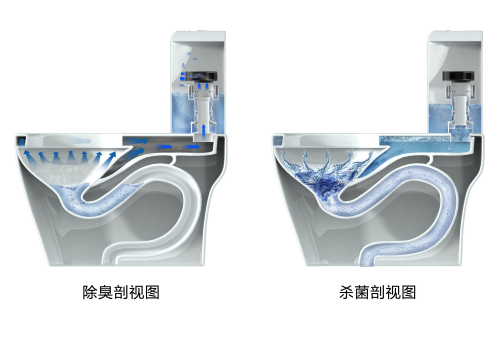智能除臭馬桶采用空氣負(fù)壓技術(shù),利用馬桶沖水通道及排水閥的中空通道,將臭氣吸入除臭功能盒,經(jīng)天然除臭介質(zhì)快速過濾分解,將臭味氣體凈化后排出,從根源上解決臭味問題。