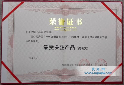 ——金牌衛(wèi)浴一體坐便器RF2168榮獲最受關(guān)注提名獎