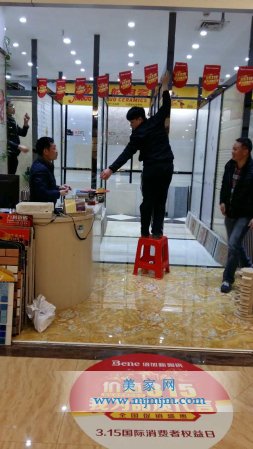 (深圳羅湖倍加新陶瓷專(zhuān)賣(mài)店在認(rèn)真布置315促銷(xiāo)氛圍)