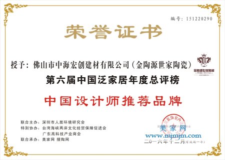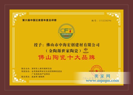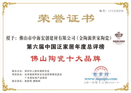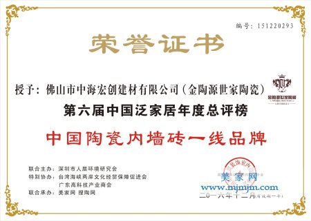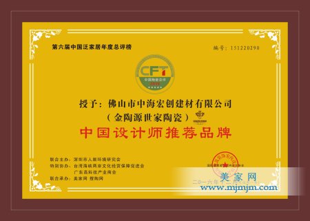 1月7日,由國際建筑裝飾室內(nèi)設計協(xié)會、中國國際環(huán)境藝術行業(yè)協(xié)會綠色節(jié)能家居建材委員會、臺灣海峽兩岸文化經(jīng)貿(mào)保障促進會、深圳市人居環(huán)境研究會攜手美家網(wǎng)、搜陶網(wǎng)共同舉辦的“第四屆中國泛家居領袖品牌論壇暨第六屆中國泛家居十大品牌總評榜”活動在金盈綠島國際中心隆重舉行。在本次活動中金陶源世家陶瓷榮獲“佛山陶瓷十大品牌”、“中國陶瓷內(nèi)墻磚一線品牌”、“中國設計師推薦品牌”三項大獎。