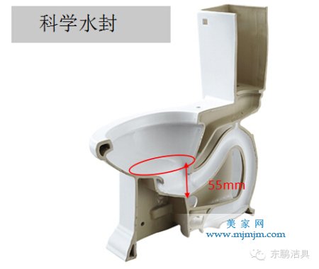 3、科學(xué)水封不掛臟:水封高度55mm(國標50mm),超凡潔凈,不掛臟。
