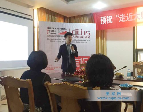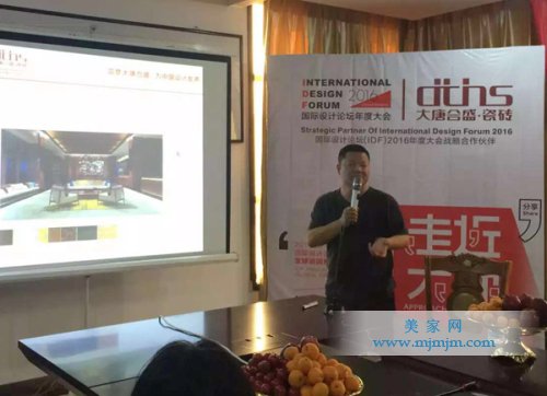 大唐合盛瓷磚信陽營銷中心總經(jīng)理劉杰致歡迎詞“走近大師”是2016IDF國際設(shè)計論壇年度大會、廣州設(shè)計周聯(lián)合大唐合盛瓷磚共同推出的系列設(shè)計師推廣活動。旨在為更多的設(shè)計師們搭建一個與大師對話的平臺,是一次知識碰撞,交流與激發(fā)靈感的絕佳機會;“走近大師”聚集中國各地設(shè)計行業(yè)的精英,激發(fā)碰撞出更具時代感更符合社會潮流的室內(nèi)設(shè)計理念,為中國室內(nèi)設(shè)計界帶來更多新文化、新理念、新力量。
