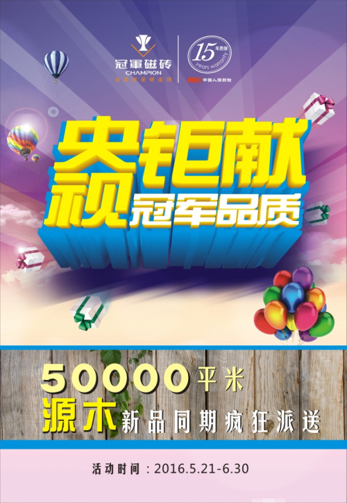 央視鉅獻 冠軍品質(zhì)——冠軍磁磚5-6月促銷火熱進行中