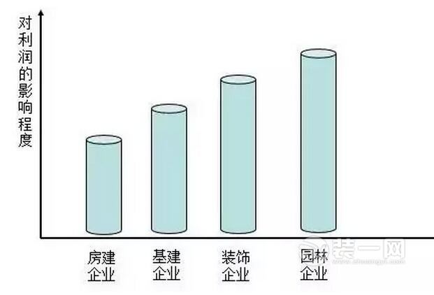 建筑業(yè)整體的產(chǎn)值利潤率約為3.5%,幾個(gè)細(xì)分的行業(yè)中,房建約為3.2%,基建約為3.7%,建筑裝飾和建筑安裝業(yè)約為4.5-5%,園林業(yè)的產(chǎn)值利潤率則遠(yuǎn)高于5%。整體而言,建筑細(xì)分行業(yè)中,產(chǎn)值利潤率越低的行業(yè),“營改增”后受到的影響越小,而行業(yè)產(chǎn)值利潤率越高的行業(yè),“營改增”后受到的影響就越大。