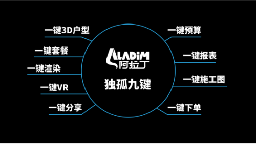 在模式工業(yè)化方面,主要價(jià)值體現(xiàn)在一張照片成模、3D壓縮技術(shù)、3D模型展示技術(shù)。在設(shè)計(jì)智能化方面,阿拉丁DIM云平臺(tái)通過(guò)打造獨(dú)孤九“鍵”的功能,一鍵出3D戶(hù)型、一鍵套餐、一鍵渲染、一鍵VR,一鍵出施工圖、一鍵出預(yù)算、一鍵出報(bào)表、一鍵分享、一鍵下單。在服務(wù)協(xié)同化方面,核心關(guān)鍵點(diǎn)在于設(shè)計(jì)協(xié)同、項(xiàng)目管理協(xié)同、供應(yīng)鏈協(xié)同。