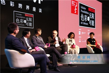 三位設(shè)計大咖的精彩演講結(jié)束后,主持人嚴(yán)巍先生邀請了幾位色彩專家共同參與“色無界——色彩跨界座談”,iColor家居設(shè)計服務(wù)平臺CEO陳慶輝先生、華為CMF技術(shù)專家郜成杰先生以及國際色彩專家、NCS色彩學(xué)院院長、NCS Colour副總裁Mr. Karl Johan Bertilsson(卡爾•約翰•貝蒂爾森)先生、多樂士專業(yè)工程渠道高級色彩經(jīng)理酈曉玲女士、Colourinsight色哲服務(wù)機構(gòu)色彩專家張嶸女士共同出席,分別就色彩潮流和趨勢、色彩對城市同質(zhì)化的改良、設(shè)計師平臺等相關(guān)問題為現(xiàn)場觀眾展現(xiàn)一場極富思辨精神和指導(dǎo)意義的頭腦風(fēng)暴。