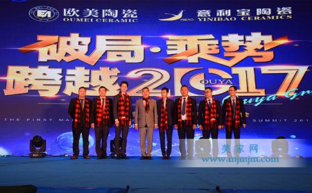 12月22日,歐雅企業(yè)第一營(yíng)銷中心歐美陶瓷、意利寶陶瓷2017年會(huì)在佛山三水金太陽(yáng)酒店召開(kāi),歐雅企業(yè)董事長(zhǎng)霍炳祥、歐雅企業(yè)總裁陳煥蓮、歐雅企業(yè)執(zhí)行總裁霍柱榮、歐雅企業(yè)第一營(yíng)銷中心總經(jīng)理兼歐美陶瓷總經(jīng)理朱志偉、意利寶陶瓷品牌總經(jīng)理張召玉、歐美陶瓷副總經(jīng)理肖穎輝等歐雅企業(yè)高層,歐美陶瓷品牌、意利寶陶瓷品牌全國(guó)各大分公司領(lǐng)導(dǎo),全國(guó)1000多位經(jīng)銷商,以及行業(yè)媒體記者齊聚一堂,共謀歐雅2017年發(fā)展大計(jì),并藉此相聚的機(jī)會(huì)迎接并規(guī)劃?rùn)C(jī)遇與挑戰(zhàn)并存的2017年!