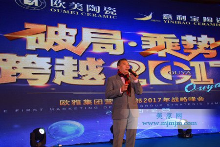 歐雅陶瓷企業(yè)董事長(zhǎng)霍炳祥先生代表歐雅企業(yè)對(duì)在場(chǎng)所有經(jīng)銷商來(lái)賓致以最誠(chéng)摯的感謝與最熱烈的歡迎,他在開(kāi)幕致辭中表示,2016年是一個(gè)充滿挑戰(zhàn)的新時(shí)期,在充滿著機(jī)遇與挑戰(zhàn)的2017年,他寄望廠商繼續(xù)攜手奮進(jìn),在新的市場(chǎng)機(jī)制下理性創(chuàng)新,把握機(jī)遇務(wù)實(shí)發(fā)展,共同譜寫(xiě)歐雅企業(yè)發(fā)展的新篇章。