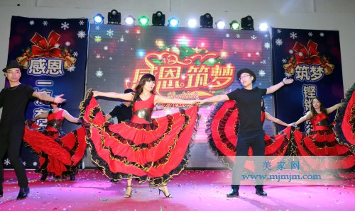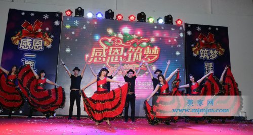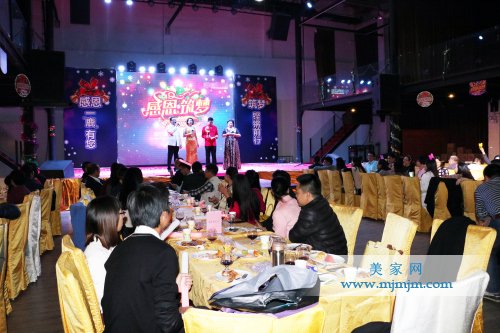晚上7點(diǎn)30分,晚會正式開始。集團(tuán)出口部總經(jīng)理伍劍鋒首先向大家透露,2016年集團(tuán)的噴墨拋光磚產(chǎn)品憑長期穩(wěn)定的質(zhì)量、豐富的花色與技術(shù)創(chuàng)新優(yōu)勢在海外終端市場銷售紅火,明年我們集團(tuán)還將推出不少于三套有國際水準(zhǔn)的仿古類產(chǎn)品,讓客戶首先在這里對我們產(chǎn)品有更深刻的認(rèn)識,了解我們的產(chǎn)品會給客戶帶來更多的價值。隨后,伍總舉起手中紅彤彤的紅酒杯,滿懷激情地給大家祝酒,希望大家在今晚的良宵里盡情放松,享受美食、欣賞我們自導(dǎo)自演、自怡自樂的精彩節(jié)目,在明年精神抖擻、輕裝上陣再打勝仗。