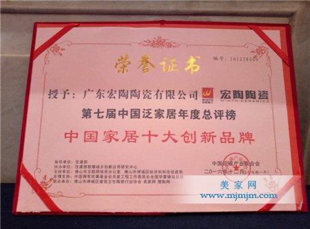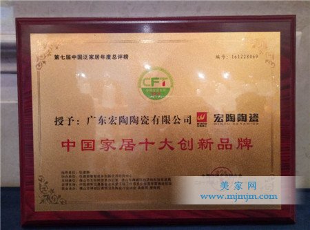 宏陶陶瓷榮獲“中國家居十大創(chuàng)新品牌”殊榮