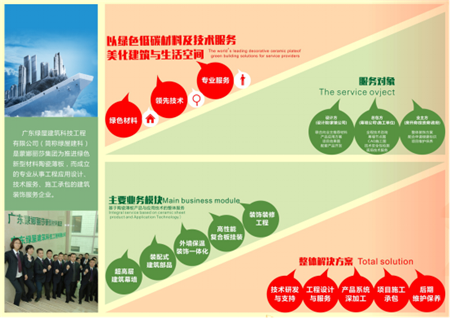 2014年1月14日綠屋建科正式立,依托蒙娜麗莎集團(tuán)全球領(lǐng)先的陶瓷薄板產(chǎn)品研發(fā)、生產(chǎn)實(shí)力及營銷團(tuán)隊,以陶瓷薄板為核心,多元化材料相結(jié)合,致力于提供陶瓷薄板綠色建筑幕墻與人居空間裝飾解決方案,包括建筑幕墻、外墻保溫裝飾一體化、高性能復(fù)合板、裝配式建筑部品、裝飾裝修工程等業(yè)務(wù)模塊,提供技術(shù)開發(fā)與支持、工程設(shè)計與服務(wù)、產(chǎn)品系統(tǒng)深加工、施工承包的建筑裝飾一體化服務(wù)。