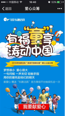 2016年,東鵬潔具攜手鳳凰網(wǎng)和米公益平臺聯(lián)合發(fā)起“濤濤不絕明日星”關(guān)愛貧困兒童夢想的大型公益項目應(yīng)運而生。東鵬潔具面向全國各地征集需要圓夢孩子的名單,最終挑選9省18個地區(qū)的明日星開展深入探訪并助力圓夢,向社會各界為愛發(fā)聲,讓更多的人關(guān)注“明日星”群體。