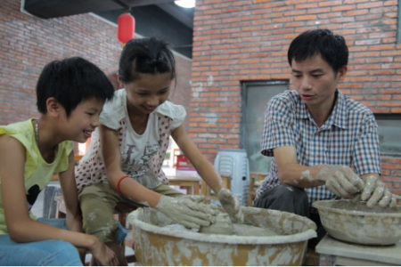 東鵬潔具圓夢團隊特意帶紫怡一家來到石灣南風古灶進行了一次有趣的制陶體驗。玩泥巴的樂趣和一家人其樂融融的幸福氣氛融為一體,空氣中洋溢著幸福美滿的味道。
