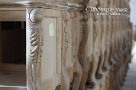 木立方浴室柜從精選上好木材、開(kāi)料、烘干、木材暴曬、技術(shù)處理、木工制板、雕刻、打磨、木工磨砂、木工制作、上底漆等工序,多達(dá)42道工序,層層把關(guān),從而保證每一個(gè)木立方浴室柜都是精粹品質(zhì),將歷史的人文感與皇室尊貴融為一體。