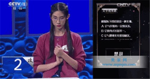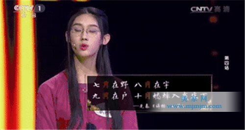看看她在念詩的時候,靈動的臨場表現(xiàn),完勝對手。念到“七月在野,八月在宇 ,九月在戶,十月蟋蟀入我床下”的時候,自帶“陶醉”,會心一笑。連董卿和嘉賓都萌倒了。用這種狀態(tài)面對挑戰(zhàn),當然事半功倍。