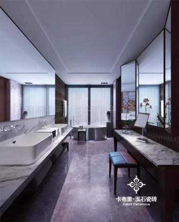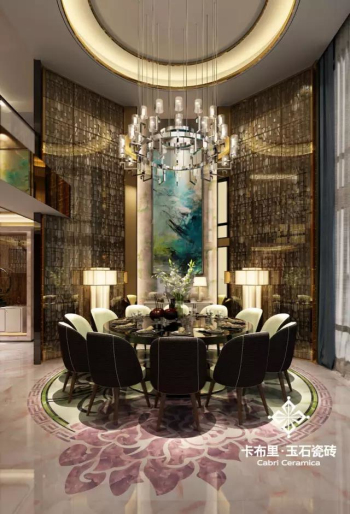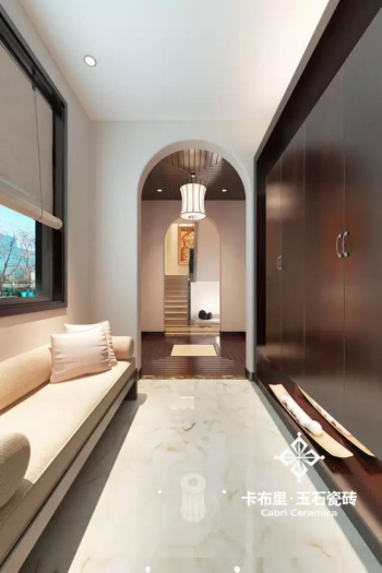 玉石瓷磚不光要講功能,還要創(chuàng)造一種景觀。白云金線玉正是家裝空間景觀設計中的絕好典范,紋理如同金線穿過白云,把和田玉的絮狀沁完美復原,紋路細小柔和不影響整體色調又彰顯生動之美,畫面感十足。