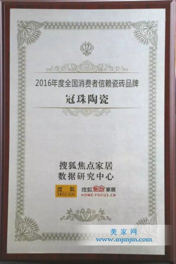社會信賴,重責在肩。搜狐焦點家居自14年起就一直以提升中國居民家居水平,倡導健康舒適的生活方式為己任。為消費者提供權(quán)威的數(shù)據(jù)分析和參考意見。冠珠陶瓷從成立之初就以高品質(zhì)為目標,不斷踐行。也正是因為如此,根據(jù)搜狐焦點家居數(shù)據(jù)研究中心審議,特授予冠珠陶瓷“2016年度全國消費者信賴瓷磚”的榮譽。冠珠陶瓷將把這份信任和肯定一直堅持下去。