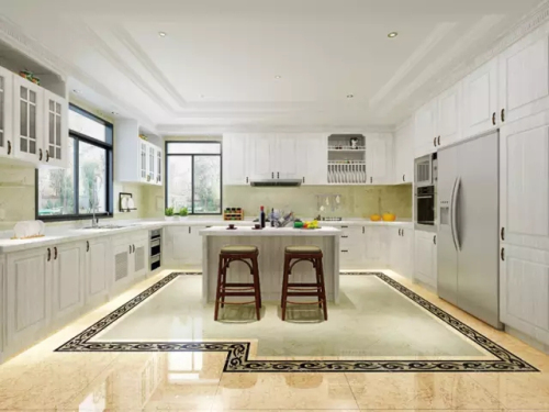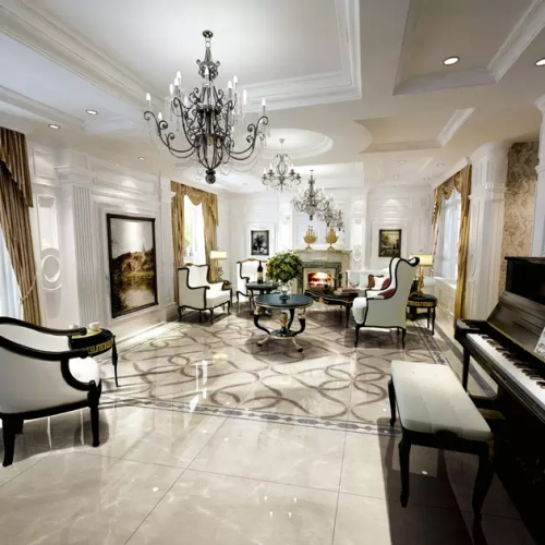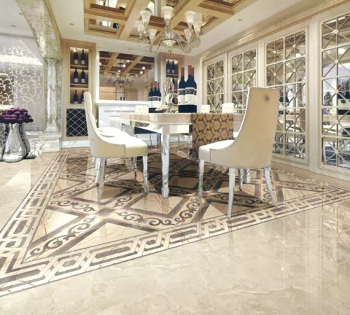 大理石瓷磚“摩卡金”表面光澤柔美,備具層次感和立體感。淺黃、淺褐、深黃、深褐相交而成,色彩柔和,自然逼真,紋理細(xì)膩更勝于天然石材。渾厚的天然氣息不乏現(xiàn)代美感,營造出雅致而高尚的情懷。