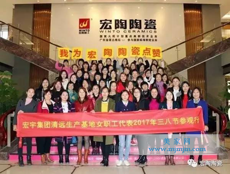 3月8日上午,宏陶清遠生產基地骨干女精英近60人組成的參觀團在清遠生產基地總經理助理、工會主席賴榮奎的帶領下,參觀了宏陶陶瓷恢弘大氣、文化底蘊濃厚的總部展館,體驗了VR裝修黑科技。