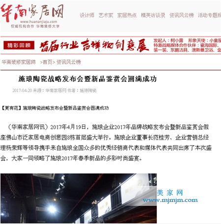 活動上,施瑯陶瓷與蘭斯瓷磚共同發(fā)布最新的品牌發(fā)展戰(zhàn)略,兩個品牌的新品各有千秋,收獲一浪接一浪的掌聲和贊譽。精彩的鑒賞會吸引了20家行業(yè)主流媒體跟蹤報道,一時間,各大主流網(wǎng)媒、微信公眾號仿佛全都成為了施瑯和蘭斯的主場!