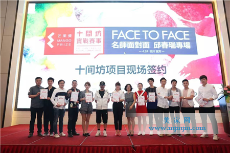 邱春瑞評委與廖瑋女士與瀘州賽區(qū)四位設(shè)計師周建良(右1)、張靜(左2),以及團(tuán)體陳殿生(右2)、劉。ㄗ1)簽下十間坊實戰(zhàn)賽參賽之約,意味著他們2017十間坊實戰(zhàn)賽賽程正式開啟。