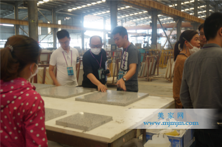 在更深一步的考察探討中,榮冠石材銷售經(jīng)理和廠長把公司的原料、生產(chǎn)工藝流程、設(shè)備、檢驗設(shè)備再次進(jìn)行了全面的展示;并且把公司各類產(chǎn)品從原材料到半成品、成品過程中的各步驟的生產(chǎn)工藝以及檢驗過程進(jìn)行了詳細(xì)介紹。