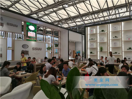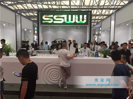 向往自然是一種生活哲學(xué)的主張,不要繁復(fù),不要喧嘩,主張極簡主義,呈現(xiàn)物種的原型和注重原材的本質(zhì)。浪鯨衛(wèi)浴今年的展館設(shè)計(jì)采用簡潔的線條勾勒出井井有條的空間布局,中間部分墻體用木框鏤空展示,通過光影變化,視覺上增大了空間的面積。館內(nèi)簡約干凈的顏色風(fēng)格,搭配自然花卉、綠植,仿若置身大自然氧吧,令人神清氣爽;接待處素色布藝沙發(fā)以及木制小配件,令整個(gè)空間體現(xiàn)出悠閑自在,清透自然的人文氣息。