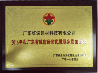 5月23日,2017年中國企業(yè)文化(廣東)論壇暨廣東省企業(yè)文化建設(shè)論壇在廣州遠(yuǎn)洋賓館隆重舉辦。紅波建材作為此次活動的出席嘉賓,分別榮獲《2016年度廣東省誠信經(jīng)營優(yōu)質(zhì)服務(wù)最佳企業(yè)》、《2016年廣東省最受客戶信賴企業(yè)品牌》等殊榮。