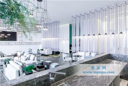 維港銷售中心的前身是一個舊工業(yè)廠房,通高有五米,無過多的承重墻,其結(jié)構(gòu)的多變性使得我們設(shè)計者可以往更多的方向發(fā)展延伸。設(shè)計師首先將整座建筑看成一個有機(jī)體,建筑的外觀,設(shè)計師將外墻打掉,裝上通透的大落地玻璃窗,拓展了內(nèi)外的視野,將戶外的光線引入到室內(nèi),同時延伸出寬闊的室內(nèi)空間景致。