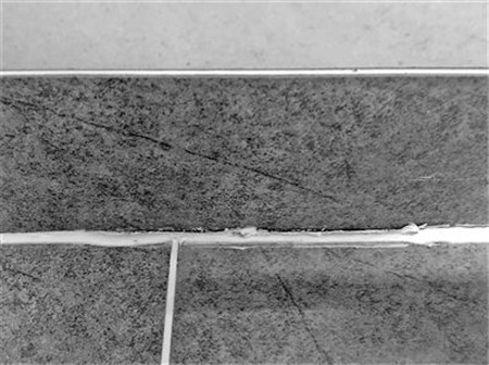 ▲作為家裝過程中看似不起眼的輔材,美縫劑的挑選不可小視,質(zhì)量差、不環(huán)保的產(chǎn)品往往會出現(xiàn)掉渣、脫落的情況,修補(bǔ)不易