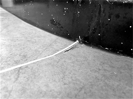什么是美縫?簡單說,就是把專業(yè)的材質(zhì)填在瓷磚與瓷磚之間的縫隙中,方便清潔,防止藏污納垢,還有一定的美觀性。在消費(fèi)者熊先生家看到,廚房、衛(wèi)生間的全部空間以及客廳的地面都鋪上了瓷磚,并做了美縫。但奇怪的是,墻磚的美縫跟剛?cè)胱r(shí)別無二致,地磚卻出現(xiàn)了問題。無論是潮濕的衛(wèi)生間,還是幾乎沒怎么沾過水的客廳,局部都出現(xiàn)了變黑、脫落的跡象。