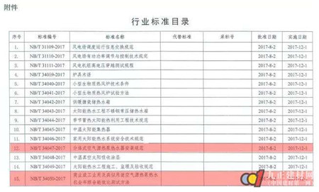 8月4日,國家能源局發(fā)布公告(2017年第8號),由中國節(jié)能協(xié)會組織起草的《分體式空氣源熱泵熱水器安裝規(guī)范》(標(biāo)準(zhǔn)號:NB/T34047-2017)、《商用或工業(yè)用及類似用途空氣源熱泵熱水機全年綜合能效比測試方法》(標(biāo)準(zhǔn)號:NB/T34050-2017)二項標(biāo)準(zhǔn)正式批準(zhǔn)發(fā)布,將于2017年12月1日實施。