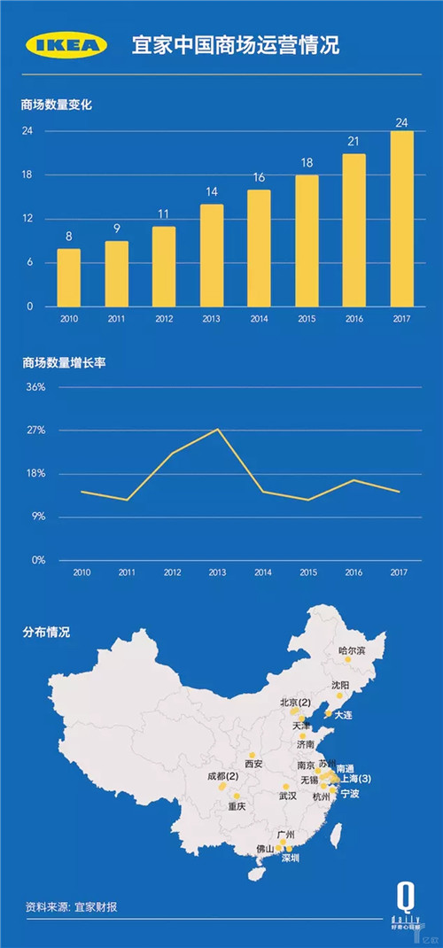 盡管是非上市公司,但宜家對于數據變化絕對敏感。增速放緩是宜家開始變化的一個最直接,同時也是最重要的原因。