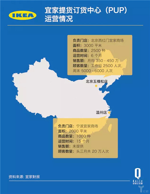 目前看來,PUP的運營情況可能也未達到預期。目前關于溫州PUP唯一的公開數據是:它在三個月的時間里接待了超過20萬訪客,下訂單的顧客中有40%的人會選擇上門提貨。而根據宜家提供的最新數據,今年初在北京五棵松開出的PUP,開業(yè)6個月以來月均銷售額達到350萬-450萬。訪客人數在工作日為2500人,周末則達到5000-6000人。
