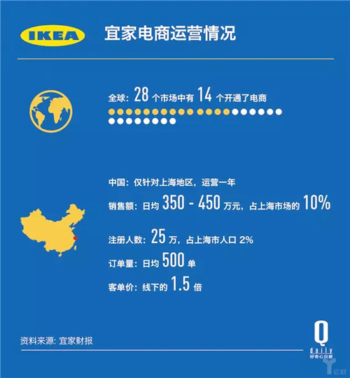 朱昌來告訴《好奇心日報》,運營一年以來,宜家上海電商目前單日單店訂單量為500單(單店指負責運營該地區(qū)電商的上海寶山宜家商場),日均銷售額為350-450萬,占上海市場總銷售額的10%。而客單價則“比較出乎意料”,是線下的1.5倍。這算是一個“符合宜家總部預期的銷售成績”。