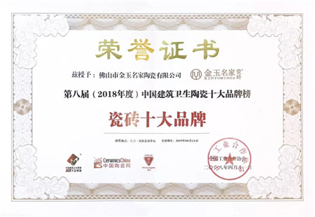 樹立現(xiàn)代匠心的典范,金玉名家瓷磚榮獲“瓷磚十大品牌”稱號!