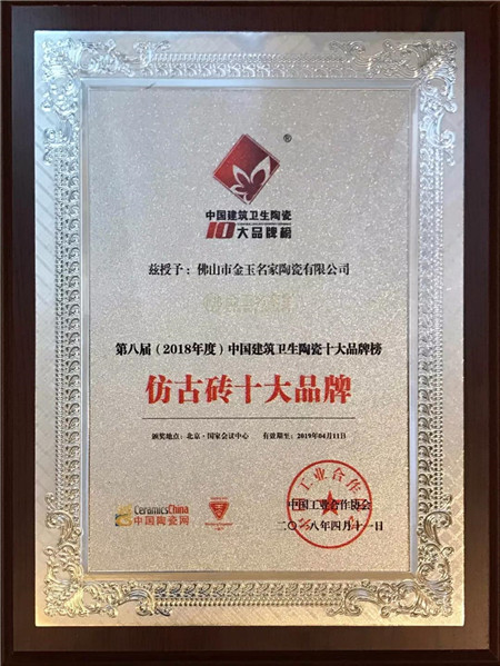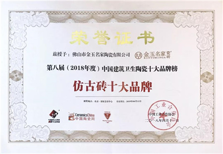 讓金玉名家一舉拿下“仿古磚十大品牌”稱號。