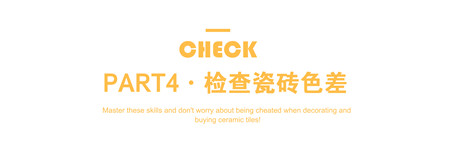 建議在光線充足的條件下檢查瓷磚的色差,好的瓷磚,其色調(diào)基本相符色差較。环粗,色差較大。
